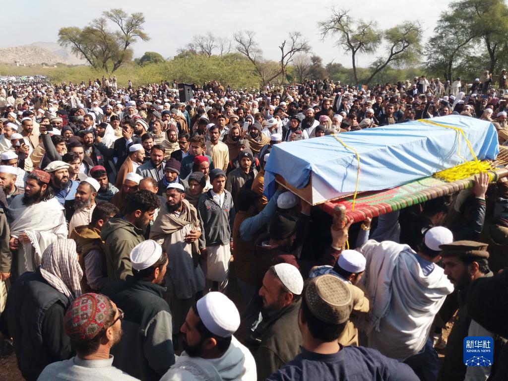 1月30日,在巴基斯坦西北部開(kāi)伯爾-普什圖省,人們參加遇難者的葬禮。