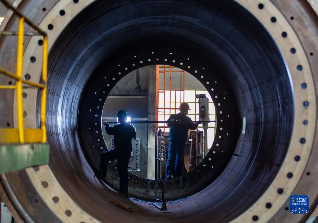 1月30日,在江蘇省海安市一家機械設備制造企業(yè),工人在車(chē)間內忙碌。