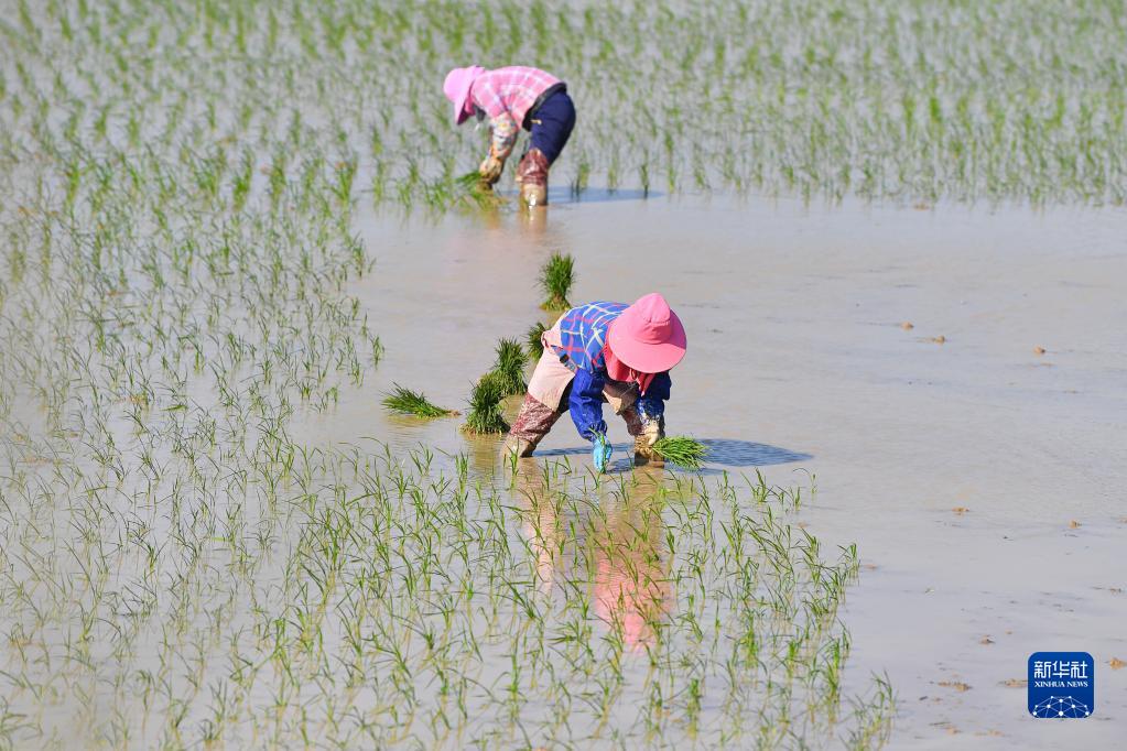 1月30日,農民在海南省??谑协偵絽^云龍鎮種早稻。
