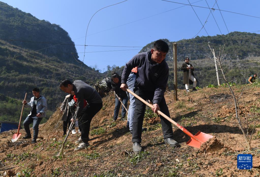 1月30日,在廣西都安瑤族自治縣菁盛鄉菁盛村,當地黨員干部群眾在春耕勞作中。