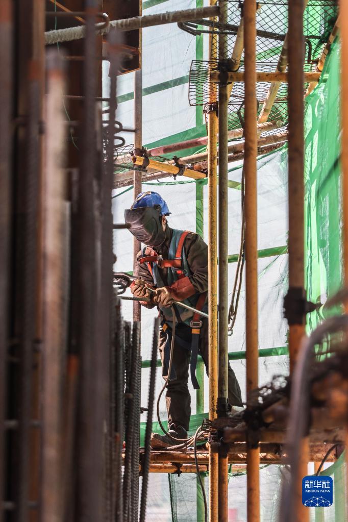 1月30日,中建三局的工人在??谑械暮D现行捻椖抗さ厣鲜┕?。