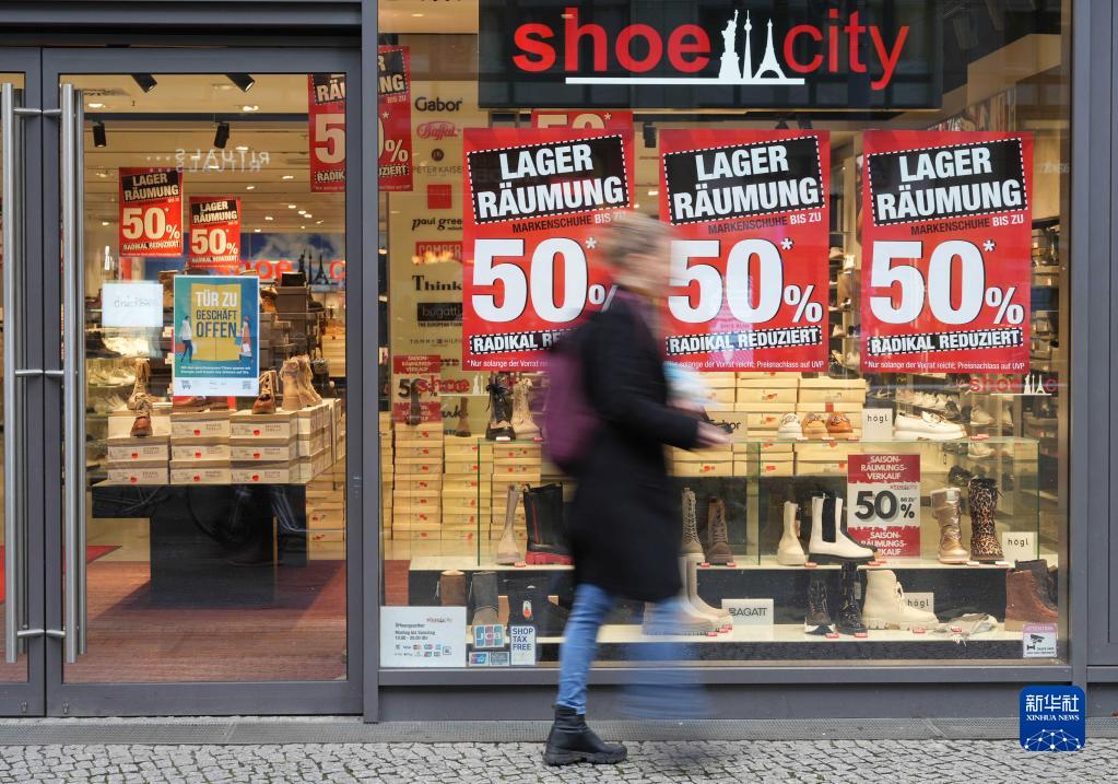2月1日,一名女子經(jīng)過(guò)德國柏林的一家打折店鋪。