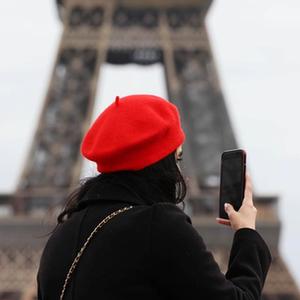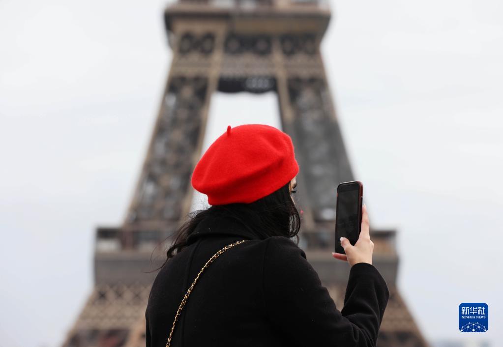 2月1日,一名游客在法國巴黎埃菲爾鐵塔附近的特羅卡德羅廣場(chǎng)參觀(guān)。