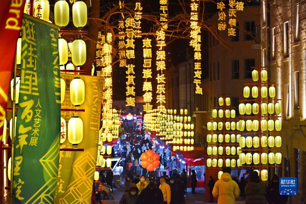 元宵節臨近,青島市市南區“逛街里”新春燈會(huì )上的璀璨花燈點(diǎn)亮了老城區的大街小巷,吸引人們前來(lái)賞燈。
