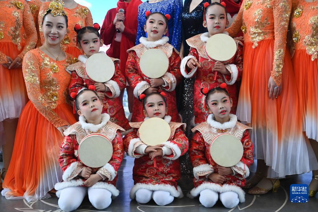 2月2日,手持“撥浪鼓”的小朋友在義烏國際商貿城的大廳參加開(kāi)市文藝表演。