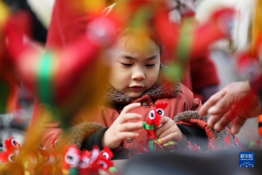 2月2日,一名兒童在山東省臨沂市郯城縣郯城街道集市上選購“春雞”。