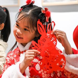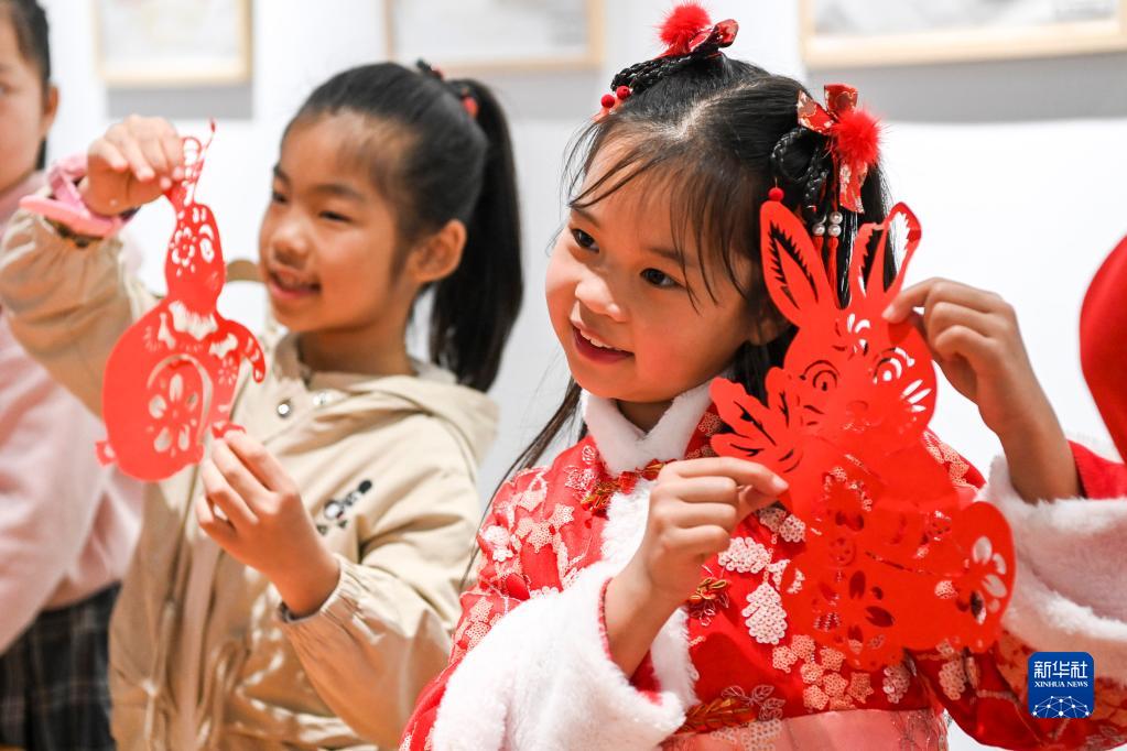 2月2日,在興業(yè)書(shū)畫(huà)院,學(xué)生們在展示自己的剪紙作品。