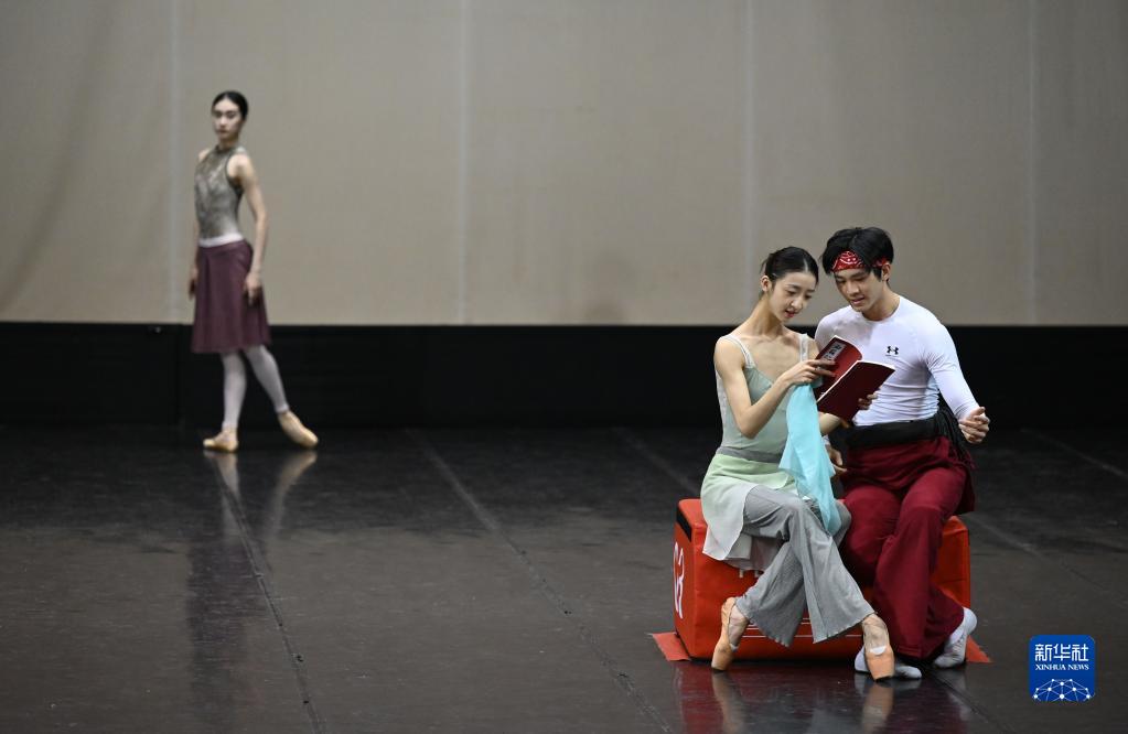 2月2日,在芭蕾舞劇《紅樓夢(mèng)》中飾演賈寶玉的演員黎文韜(右)、飾演林黛玉的演員邱蕓庭在排練。