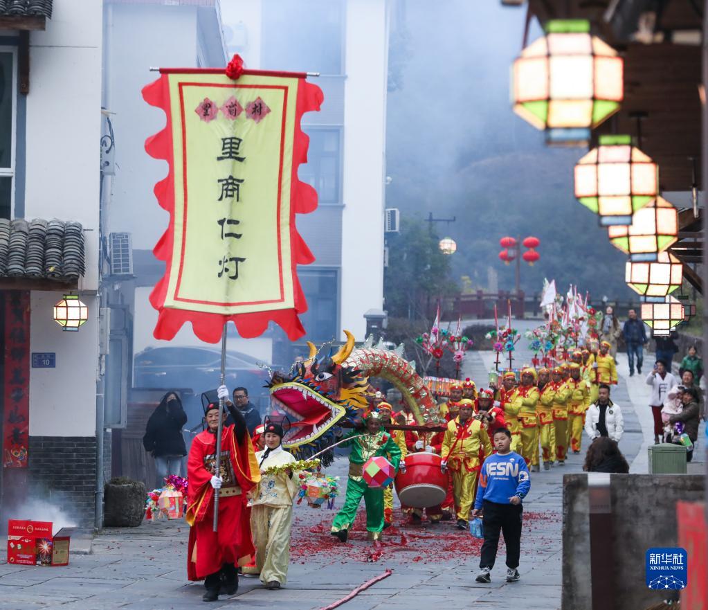 當日,浙江省杭州市淳安縣里商鄉舉行2023元宵節花燈巡游,為當地山鄉增添了熱鬧的元宵氛圍。