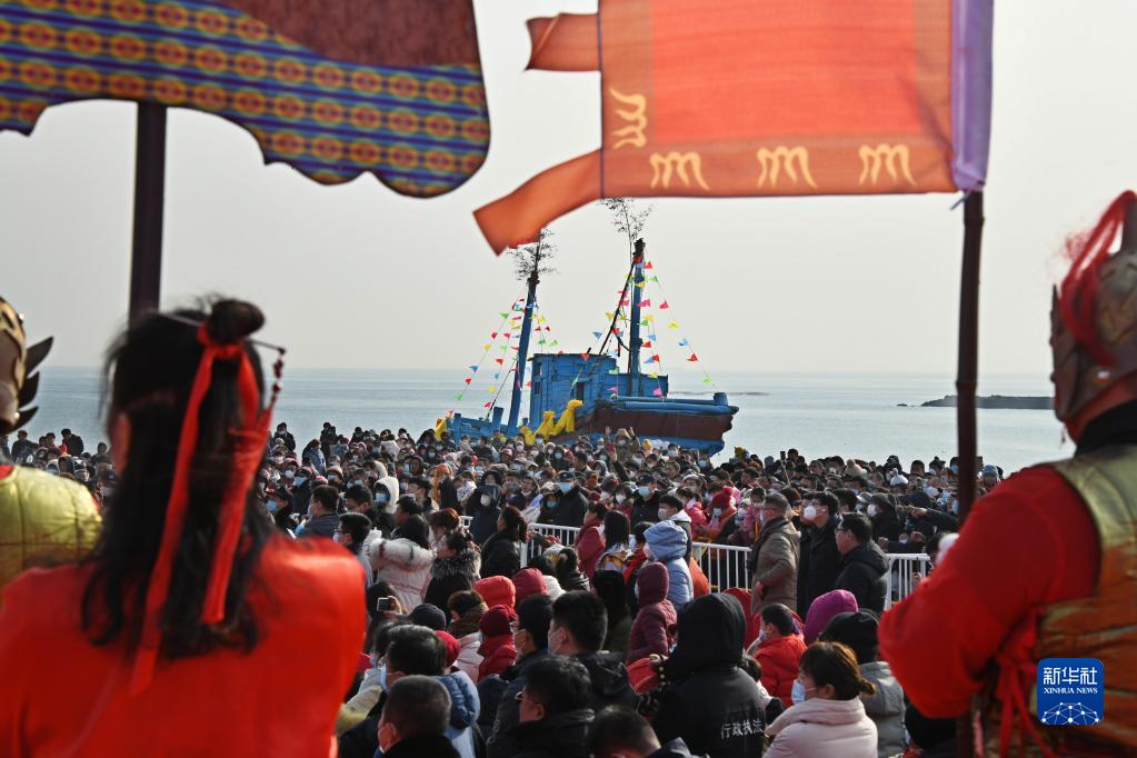 2月3日,市民和游客在觀(guān)看祭海儀式表演。