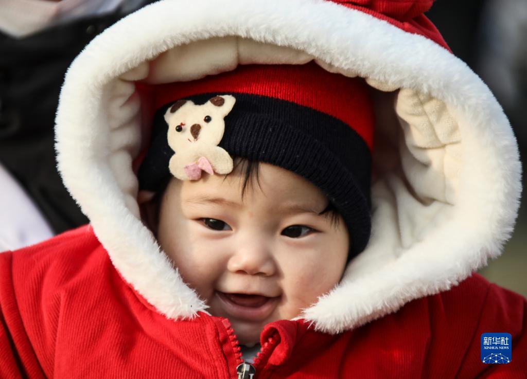 2月3日,一名小觀(guān)眾在書(shū)會(huì )上觀(guān)看表演。