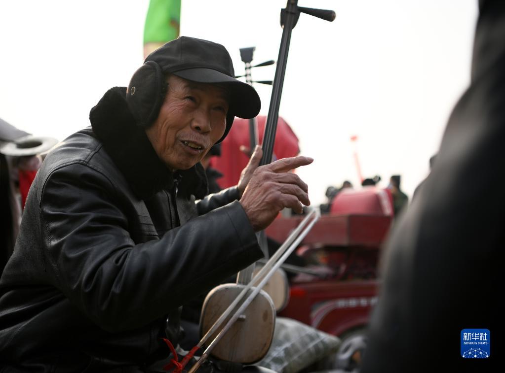 當日是正月十三,時(shí)隔三年,河南省寶豐縣馬街書(shū)會(huì )線(xiàn)下“重啟”。來(lái)自全國各地的說(shuō)書(shū)藝人負鼓攜琴,聚集于此。在麥田中,他們以天作幕,以地為臺,說(shuō)書(shū)會(huì )友,彈唱獻藝。