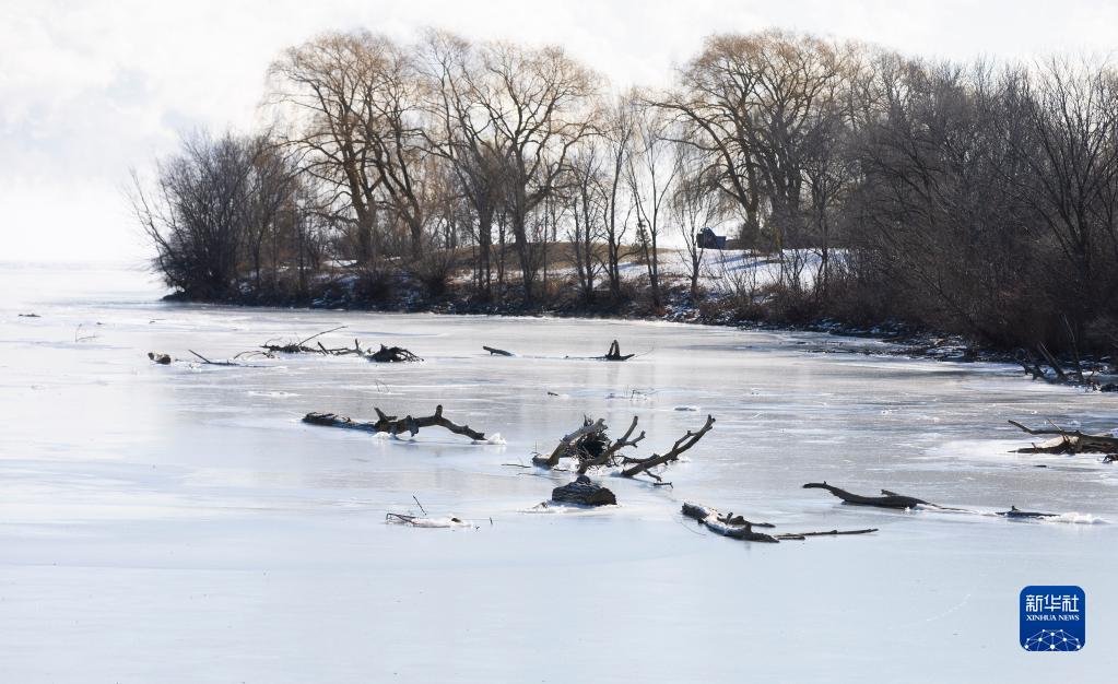 這是2月3日在加拿大多倫多拍攝的結冰的河面。