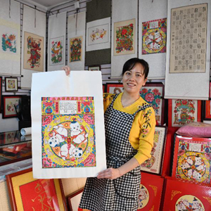 武強木版年畫(huà)是河北省武強縣傳統民間工藝品,是我國民間特有的一種繪畫(huà)體裁,2006年被列入第一批國家級非物質(zhì)文化遺產(chǎn)名錄。近年來(lái),武強縣以武強年畫(huà)博物館為載體,不斷推動(dòng)木版年畫(huà)制作技藝的傳播與傳承,同時(shí)結合現代技術(shù)推出一系列文創(chuàng )產(chǎn)品,為傳統年畫(huà)注入新的活力。