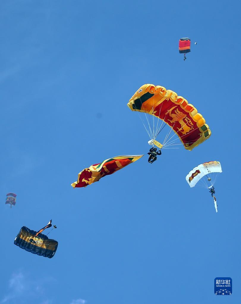 2月4日,斯里蘭卡傘兵在首都科倫坡參加閱兵儀式,慶祝斯里蘭卡獨立75周年。