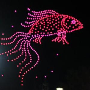 2月4日,在卓資縣九曲廣場(chǎng),游客使用手機拍攝無(wú)人機演出。