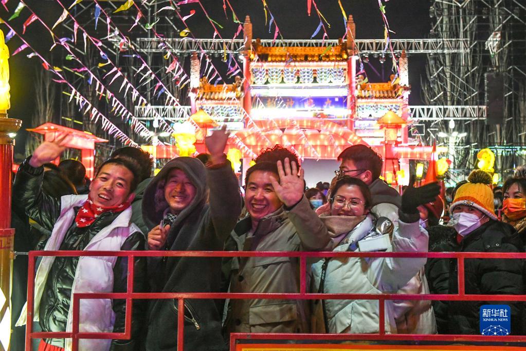 2月4日,游客在卓資縣九曲廣場(chǎng)參與“繞九曲”。