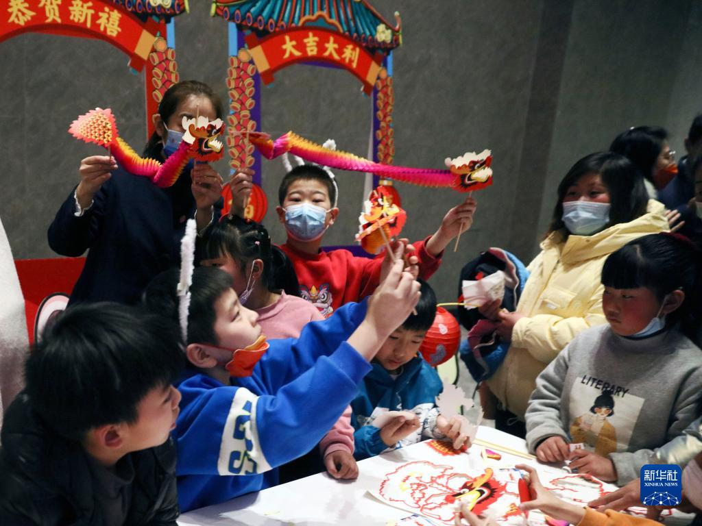 2月4日,小朋友在中國文字博物館體驗手工制作活動(dòng)。
