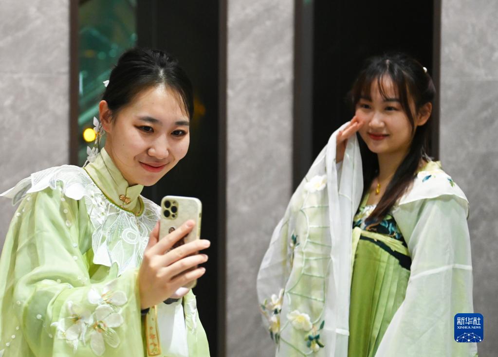 2月4日,漢服愛(ài)好者在中國文字博物館里拍照留念。