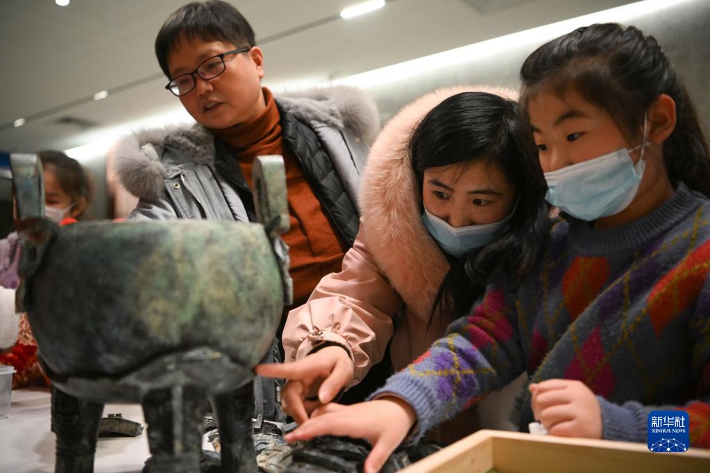 2月4日,游客在中國文字博物館體驗文物拼拼樂(lè )。