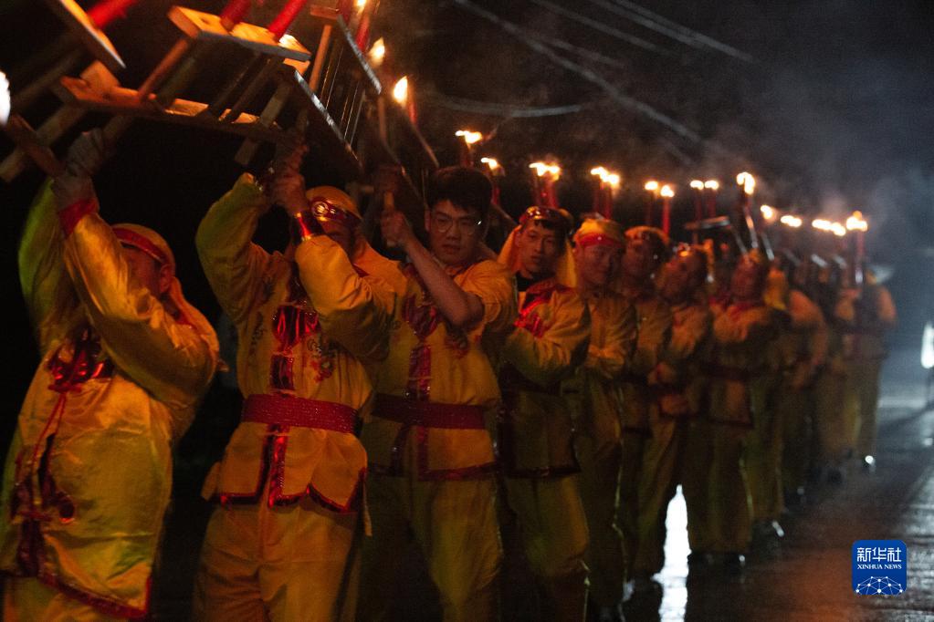 2月4日,福建武夷山興田鎮楓坡村村民揮舞燭橋穿街走巷。