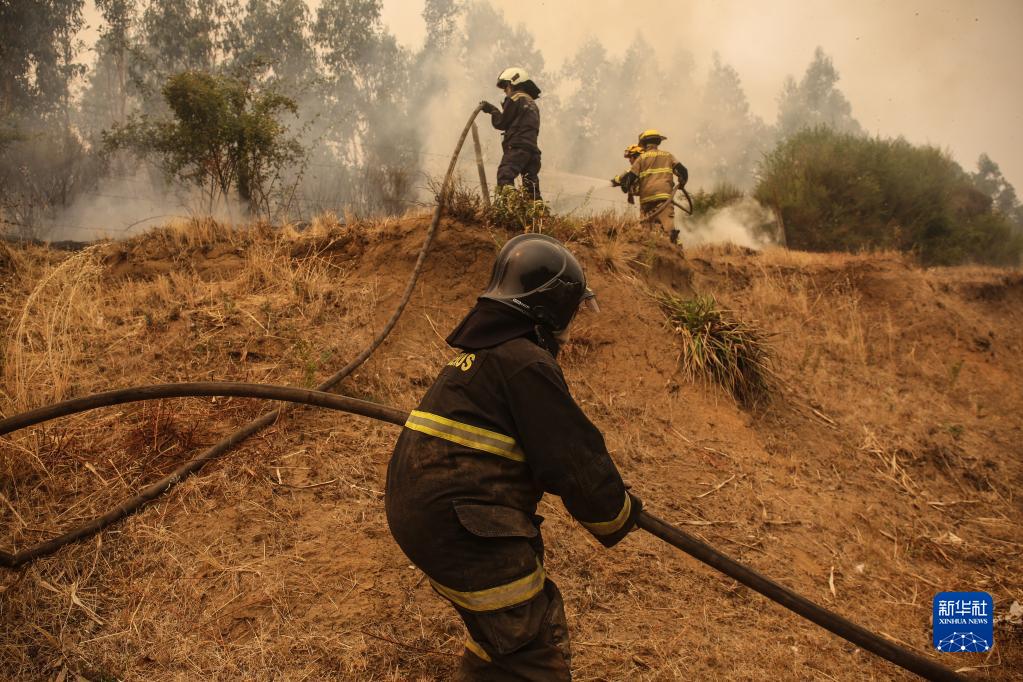 2月4日,消防員在智利比奧比奧大區納西緬托進(jìn)行滅火作業(yè)。