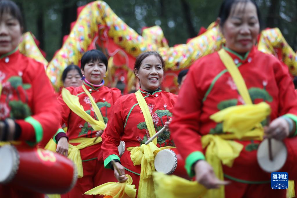 2月5日,在湖南省資興市人民廣場(chǎng),女子腰鼓隊進(jìn)行腰鼓表演。