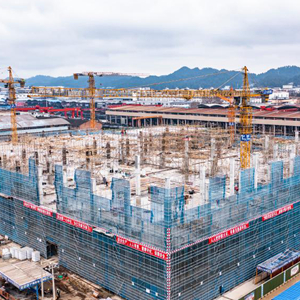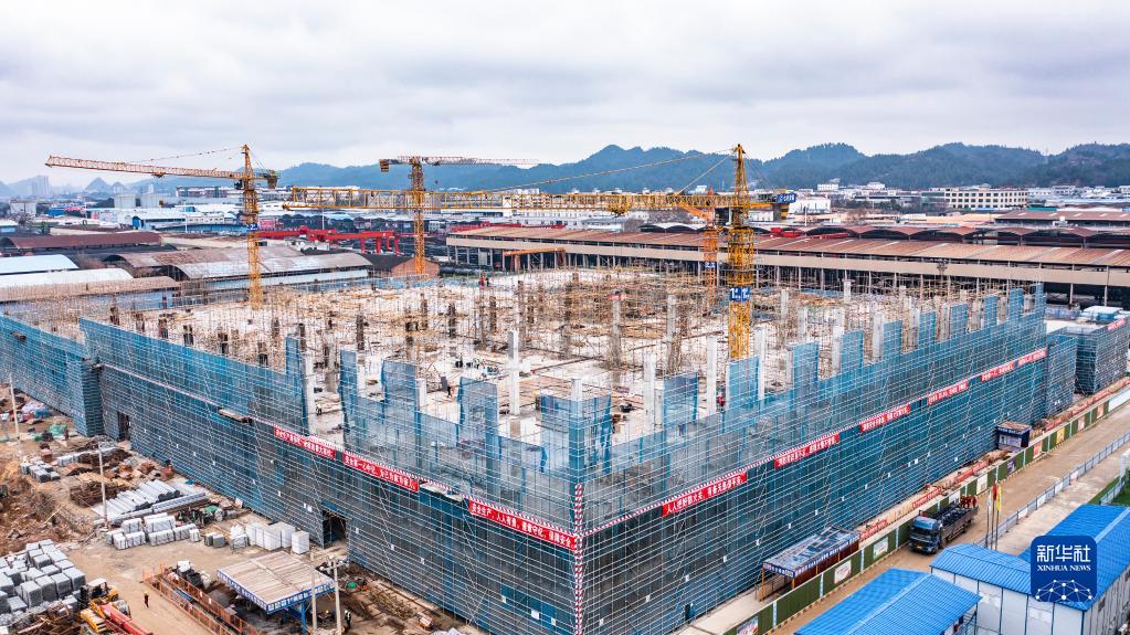 工人在貴州現代物流牛郎關(guān)智慧物流園二期項目現場(chǎng)施工(2月5日攝)。
