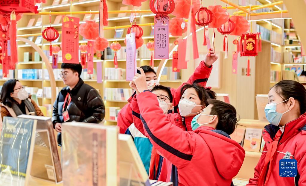 2月5日,孩子們在上海市楊浦區新江灣城街道學(xué)悅風(fēng)詠書(shū)社猜燈謎。