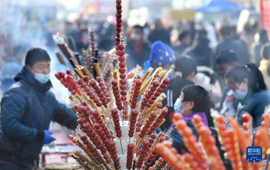 2月5日在河北省任丘市呂公堡鎮后李花村 “糖墩兒節”上拍攝的各式糖葫蘆。