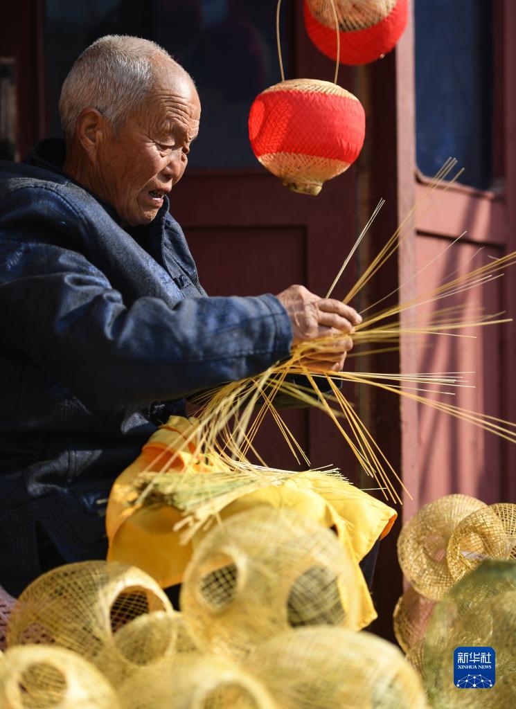 王學(xué)坤在編織竹篾燈籠(2月4日攝)。