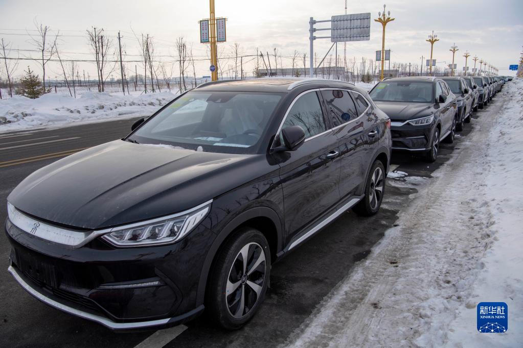 這是在巴克圖口岸拍攝的等候出口的汽車(chē)(2月4日攝)。
