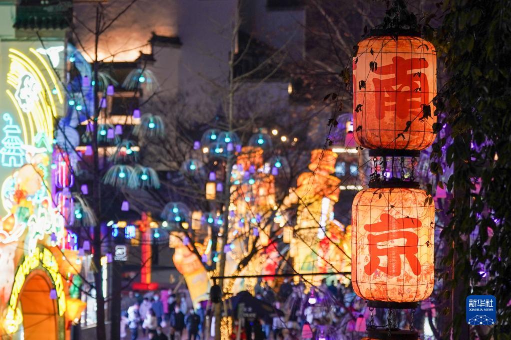 元宵節來(lái)臨,位于江蘇南京夫子廟秦淮風(fēng)光帶的第37屆秦淮燈會(huì )花燈璀璨、流光溢彩,吸引眾多市民游客前來(lái)觀(guān)景賞燈。