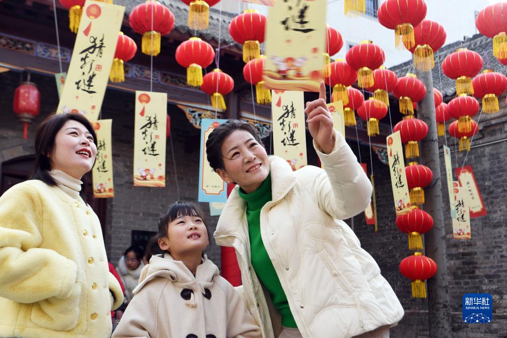 2月5日,市民在安徽省亳州市譙城區文化館猜燈謎。