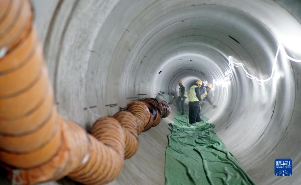 2月6日,工人在南水北調配套工程北京大興支線(xiàn)機場(chǎng)連接線(xiàn)的地下管線(xiàn)中施工。