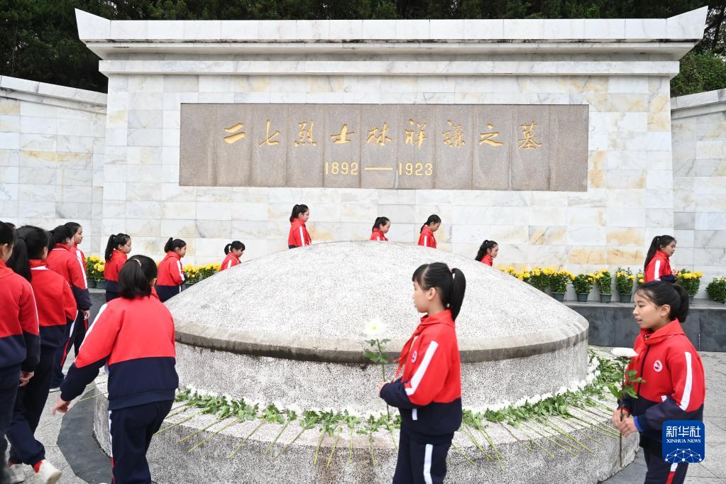 2月7日,參加“開(kāi)學(xué)第一課——致敬林祥謙”暨紀念林祥謙烈士犧牲100周年活動(dòng)的少先隊員向林祥謙烈士獻花。當日是林祥謙烈士犧牲100周年,紀念活動(dòng)在福建省福州市閩侯縣祥謙鎮的“祥謙陵園”舉行。