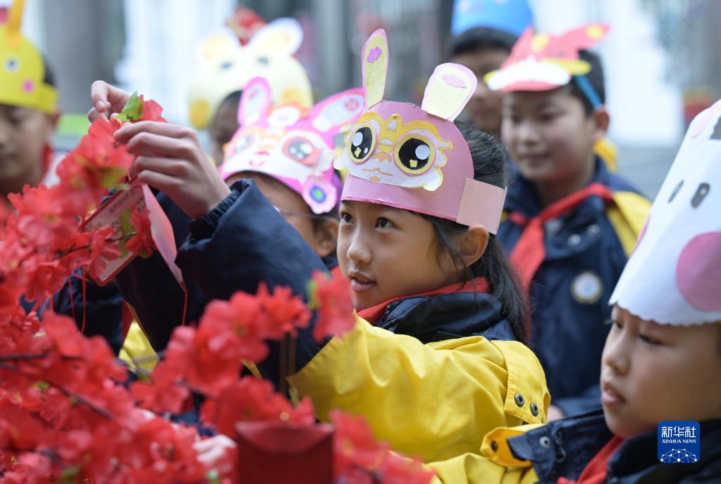 2月6日,合肥市方橋小學(xué)學(xué)生將寫(xiě)下的新學(xué)期心愿懸掛在校園里。