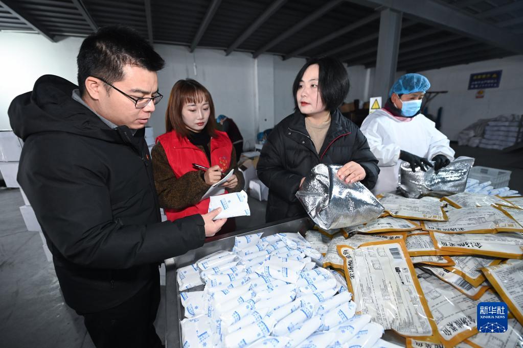 2月7日,在杭州市臨安區太陽(yáng)鎮的一家食品企業(yè)的倉儲發(fā)貨區,黨員助企服務(wù)小分隊的志愿者在與企業(yè)負責人(右二)溝通。該企業(yè)準備今年擴大規模再生產(chǎn),涉及工業(yè)用地問(wèn)題需相關(guān)部門(mén)協(xié)調解決。