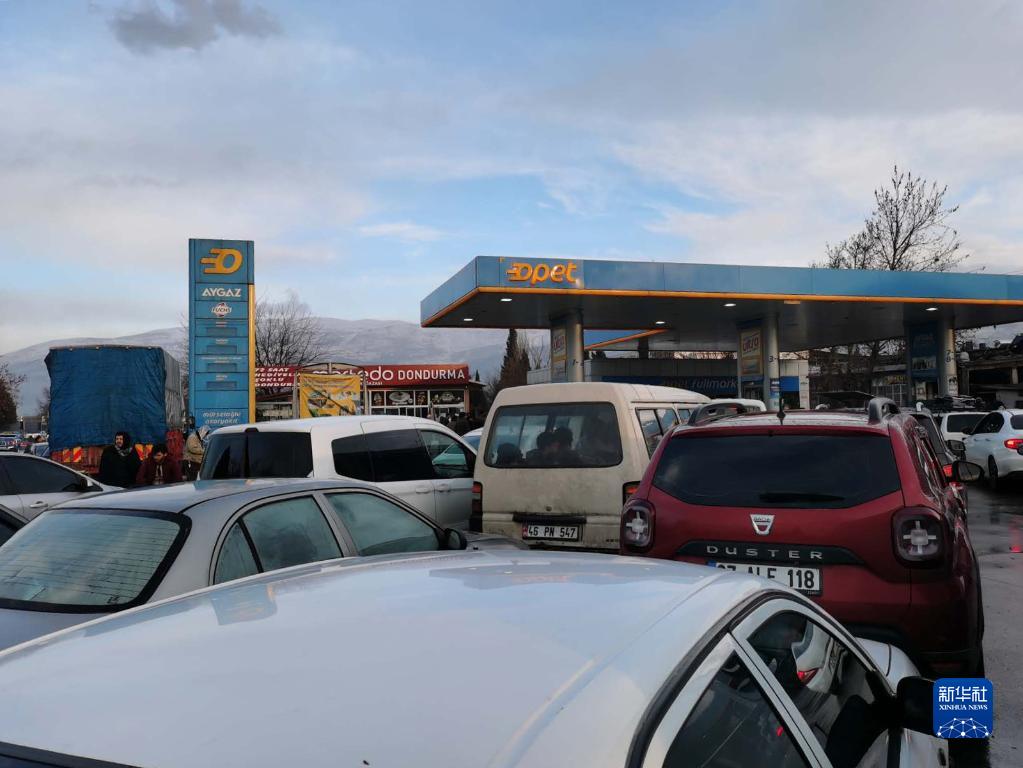 2月7日,人們在土耳其卡赫拉曼馬拉什排隊加油。目前卡赫拉曼馬拉什大部分加油站都已關(guān)閉(手機照片)。
