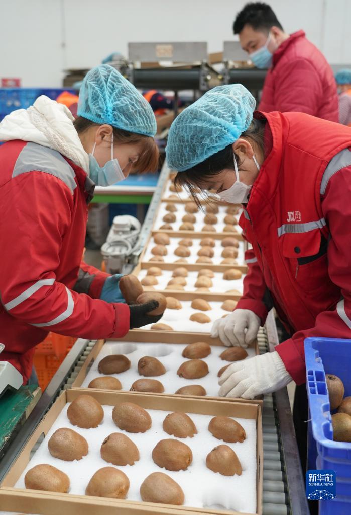 2月6日,在位于武功縣的京東物流陜西智能供應鏈中心,質(zhì)檢人員逐個(gè)檢查獼猴桃。
