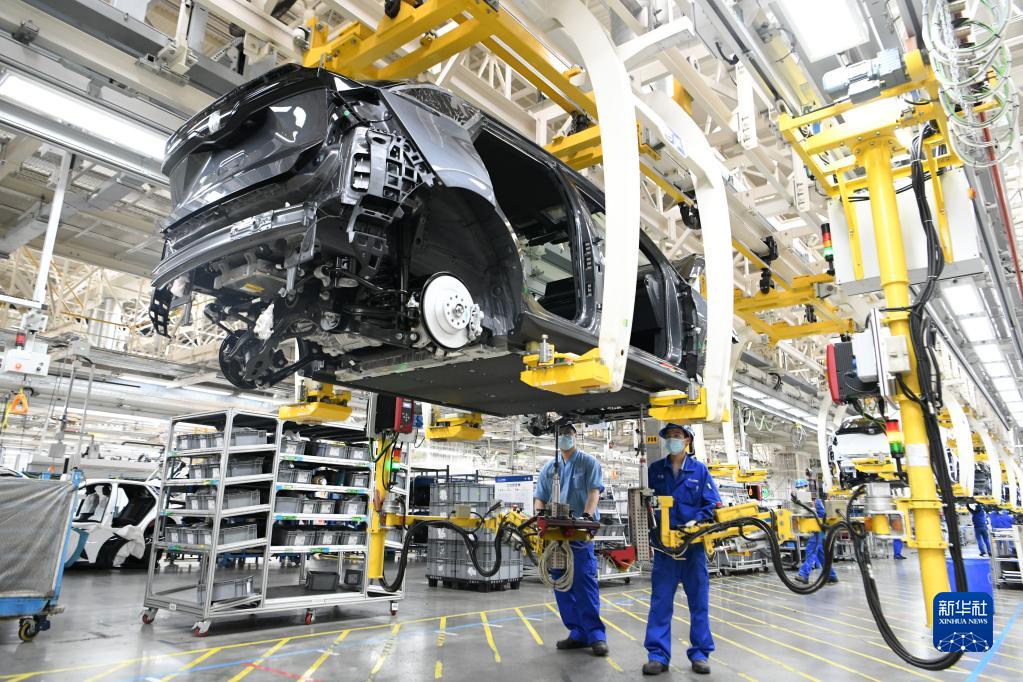 2月7日,工人在上汽集團乘用車(chē)福建寧德基地總裝車(chē)間生產(chǎn)線(xiàn)上進(jìn)行車(chē)身零部件組裝。