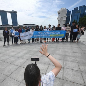 自中國重啟出境團隊游以來(lái),新加坡迎來(lái)首批中國旅游團。