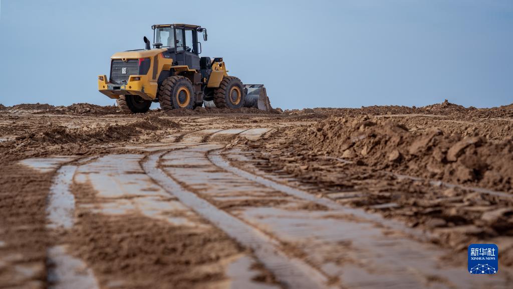 2月7日,工人操作推土機在寧夏固原市西吉縣硝河鄉蘇溝村平整土地。