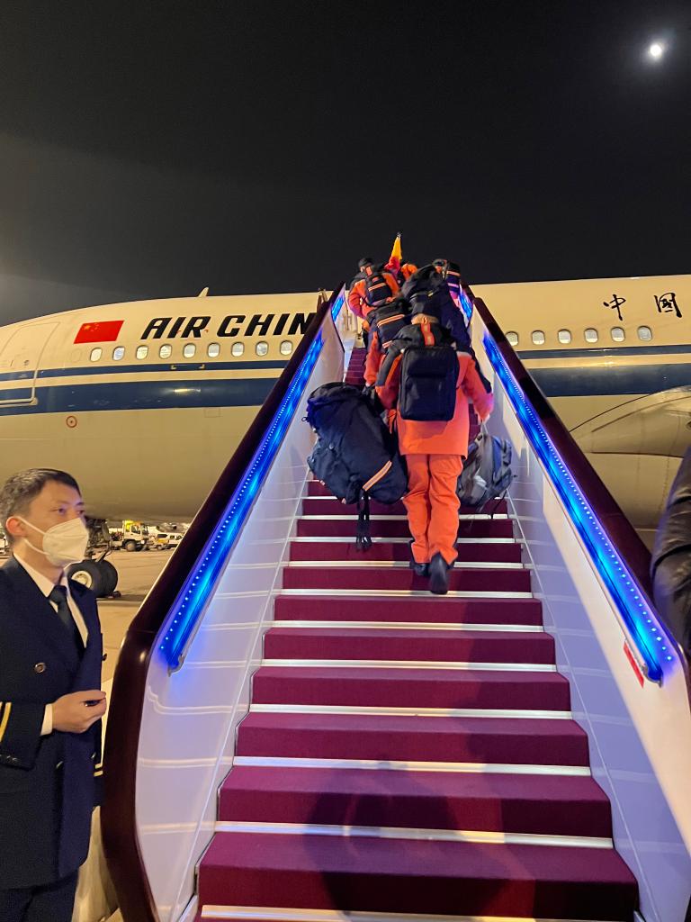 2月7日,中國救援隊隊員登上國航包機,從首都機場(chǎng)出發(fā)飛赴災區(手機拍攝)。
