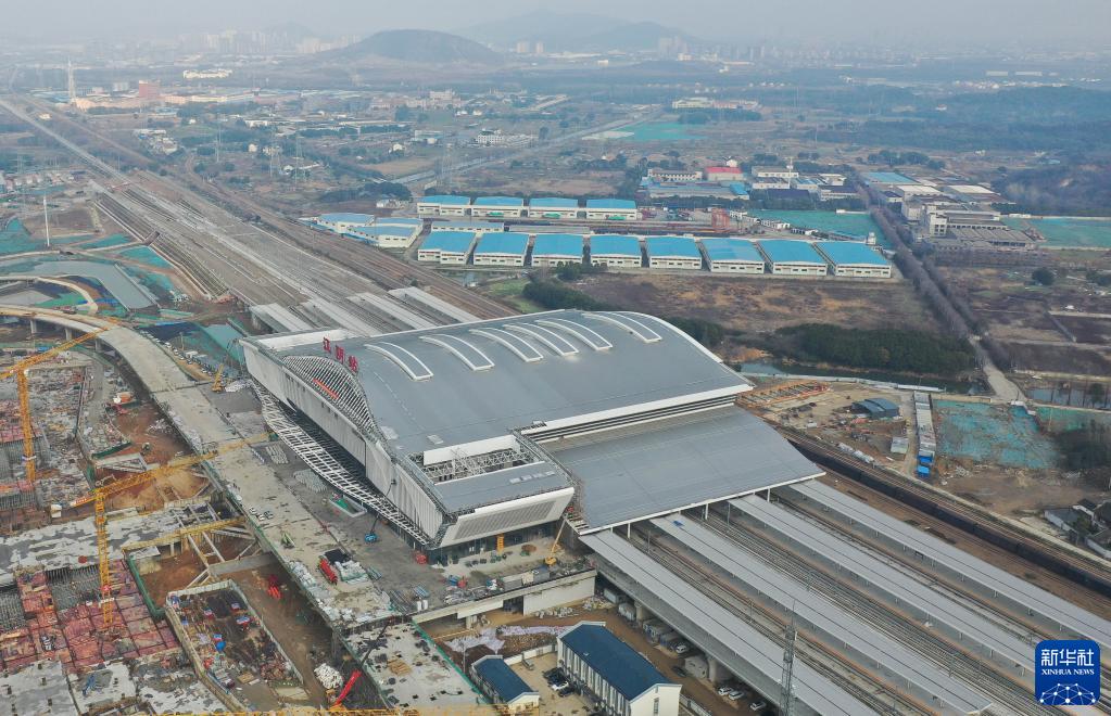 2月7日拍攝的江蘇南沿江鐵路江陰站站房(無(wú)人機照片)。
