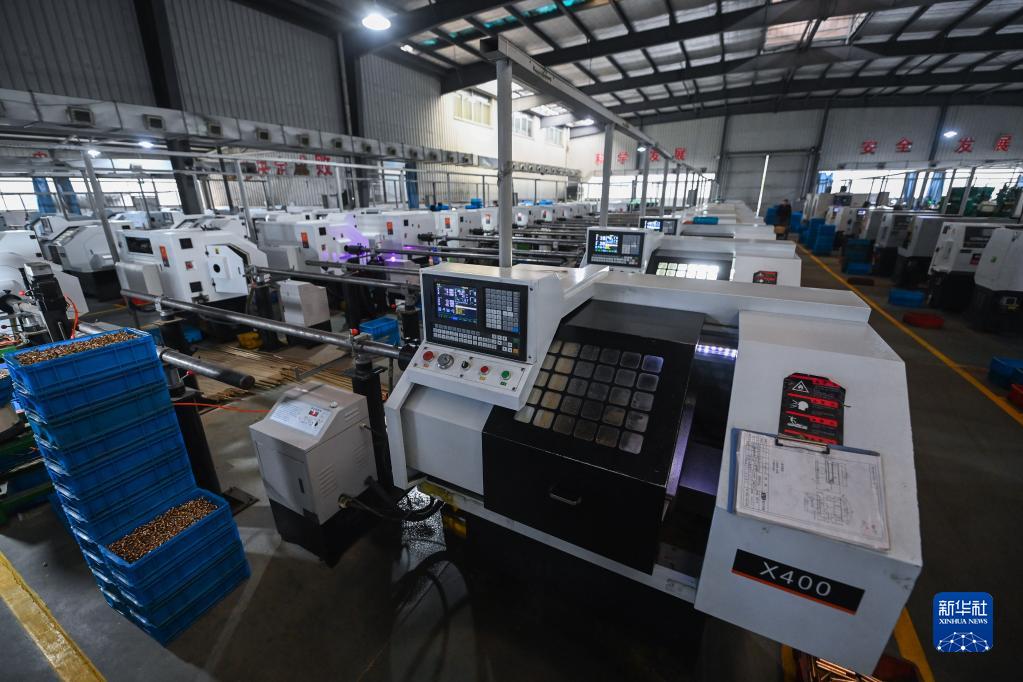 2月7日,在店口鎮的浙江銘仕興新暖通科技有限公司車(chē)間內,自動(dòng)化機床在生產(chǎn)水暖零部件。