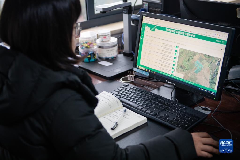 2月8日,在鼎城區農機事務(wù)中心,工作人員通過(guò)數字農業(yè)監管與服務(wù)平臺查看全區智慧農機狀態(tài)。