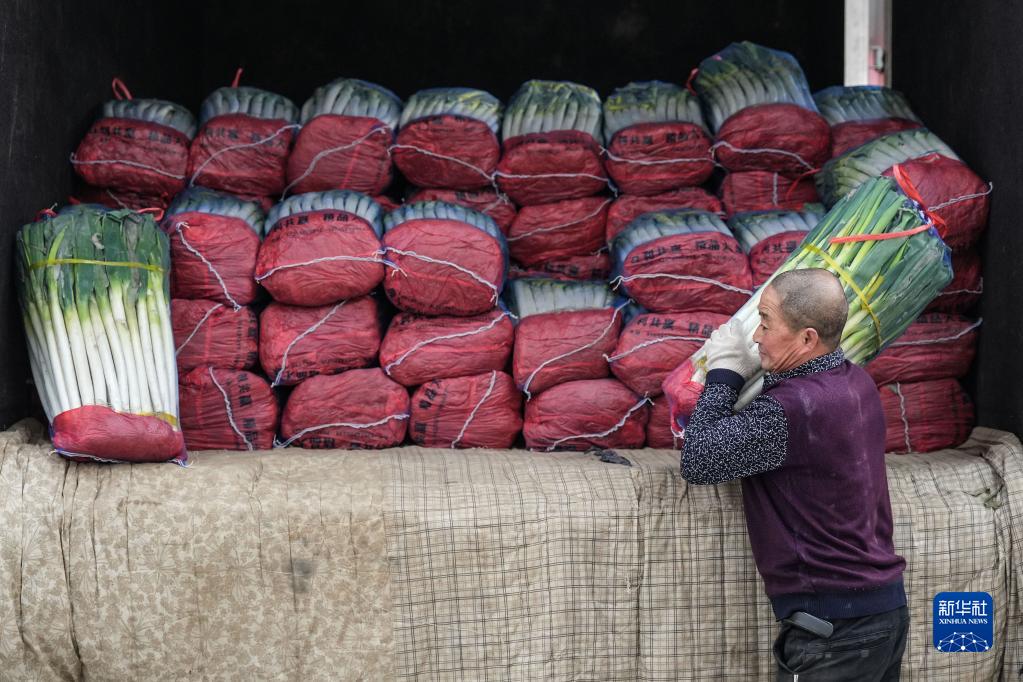 2月7日,商戶(hù)在搬運大蔥。