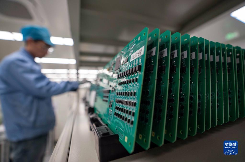 2月8日,河北滄州渤海新區黃驊市一家自動(dòng)控制系統生產(chǎn)企業(yè)工人在整理電路板。