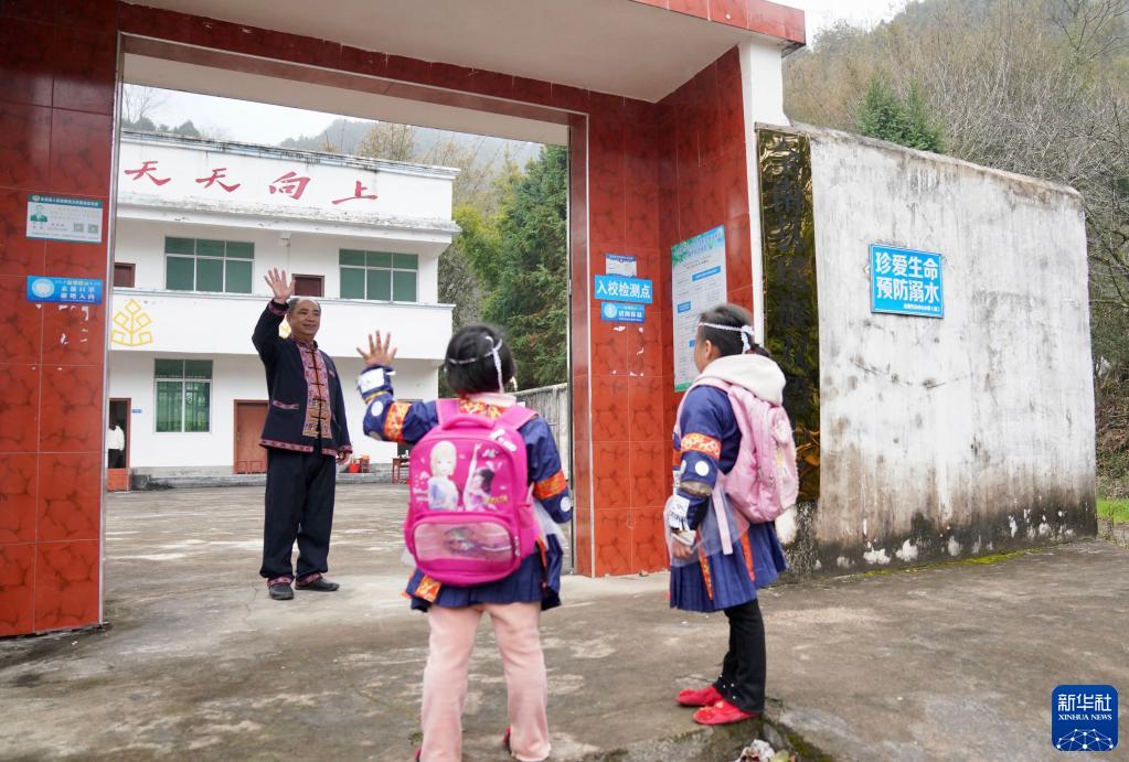 2月8日,放學(xué)后鄧煙發(fā)和學(xué)生們告別。